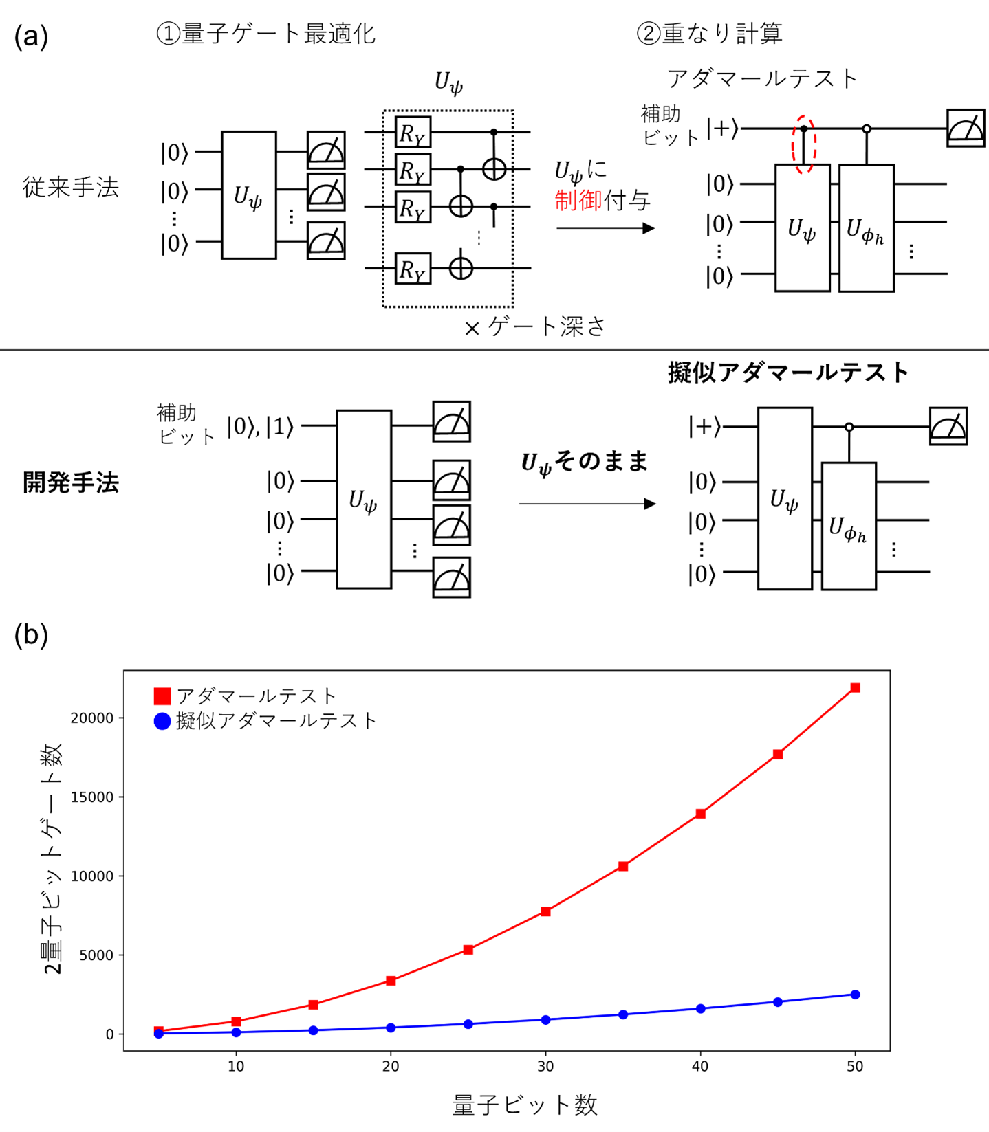 (b) アダマールテストと疑似アダマールテストにおいて必要な2量子ビットゲート数の比較※11