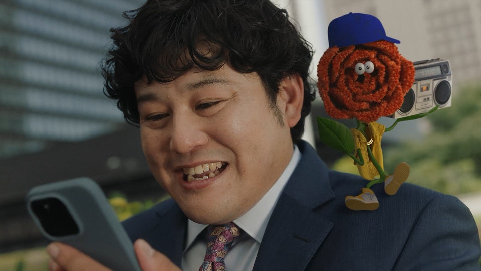 初めて住まいを買う人のもとに現れたバラをイメージしたお花のキャラクターが、「不動産情報サイト アットホーム」には新築、中古、戸建、マンション、注文住宅など、豊富な物件情報があることをラップで伝えます。