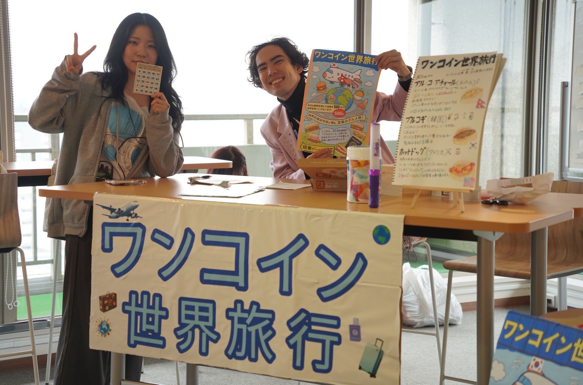 15階では、アトリエ部の作品展示、飲食店の油そばやたません、ポップコーンなどの定番メニューに加え、3カ国のサンドイッチが楽しめる「ワンコイン世界旅行」など、個性的な食べ物が並びました。