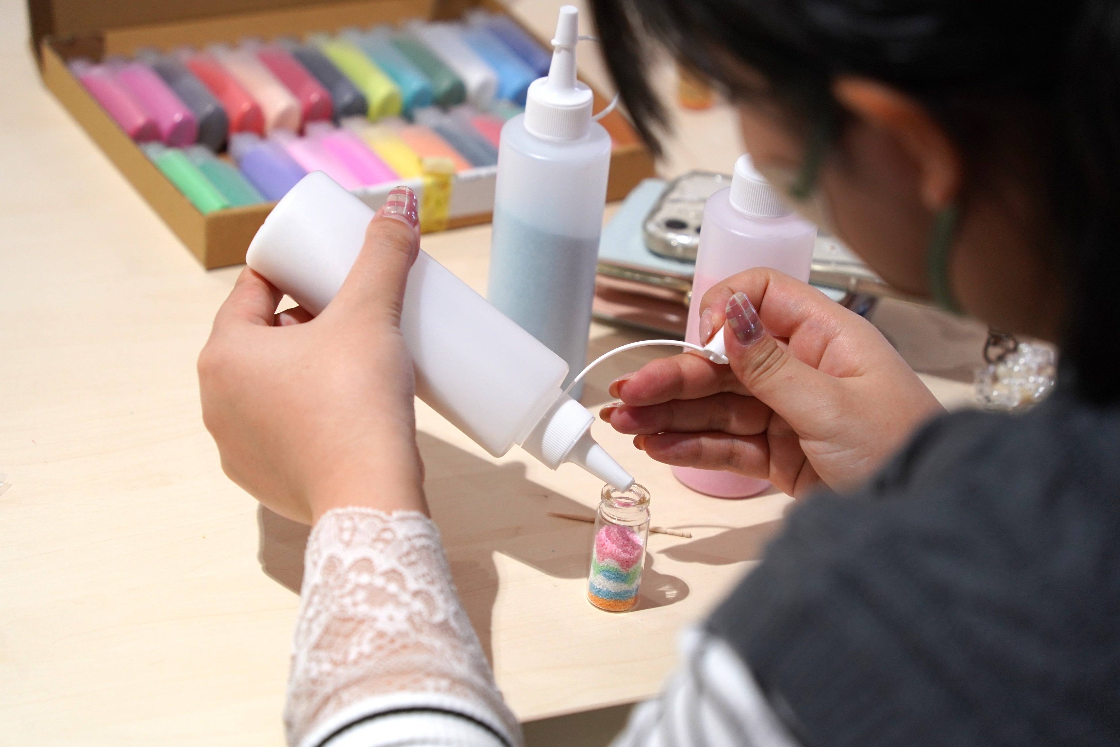 14階では、グラスサンドアートやレーザーカッターを使用したワークショップが開催され、ものづくりの楽しさを体験できる場となりました。