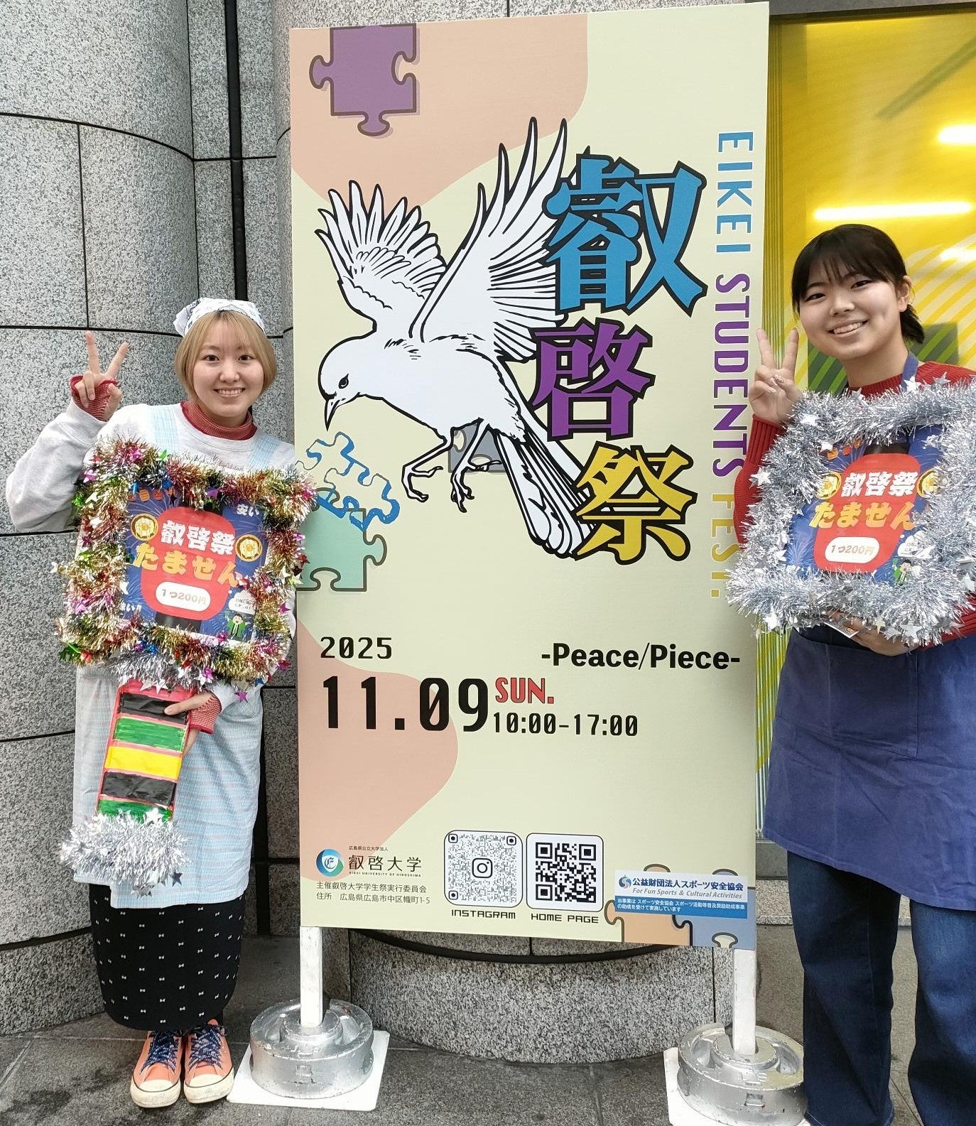今年度の叡啓祭は、6月にひろしまゲートパークで開催された多文化祭のテーマ「Piece」とのつながりを意識し、「Peace/Piece」をテーマに開催されました。 当日の展示やワークショップなどの様子をご紹介します。