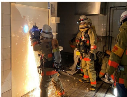 東京消防庁・地域の消防団、町会と連携し、解体予定ビルを活用した訓練を実施。稼働中のビルではできないリアルな訓練により実践力向上を目指す。