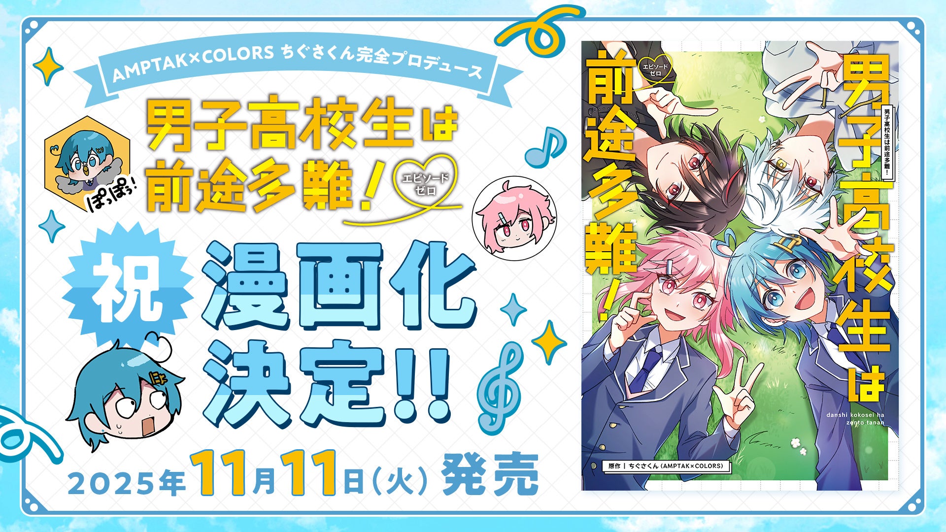 株式会社STPR(本社:東京都渋谷区、代表:柏原真人、以下STPR)は、当社所属の超多才2.5次元歌い手グループ「AMPTAKxCOLORS」の「ちぐさくん」の誕生日である2025年9月2日(火)に、自身初となるソロオリジナル曲の公開ならびに漫画『男子高校生は前途多難!-エピソードゼロ-』の発売を決定したことをお知らせいたします。あわせて、誕生日を記念したバースデーグッズの受注販売も開始いたしました。