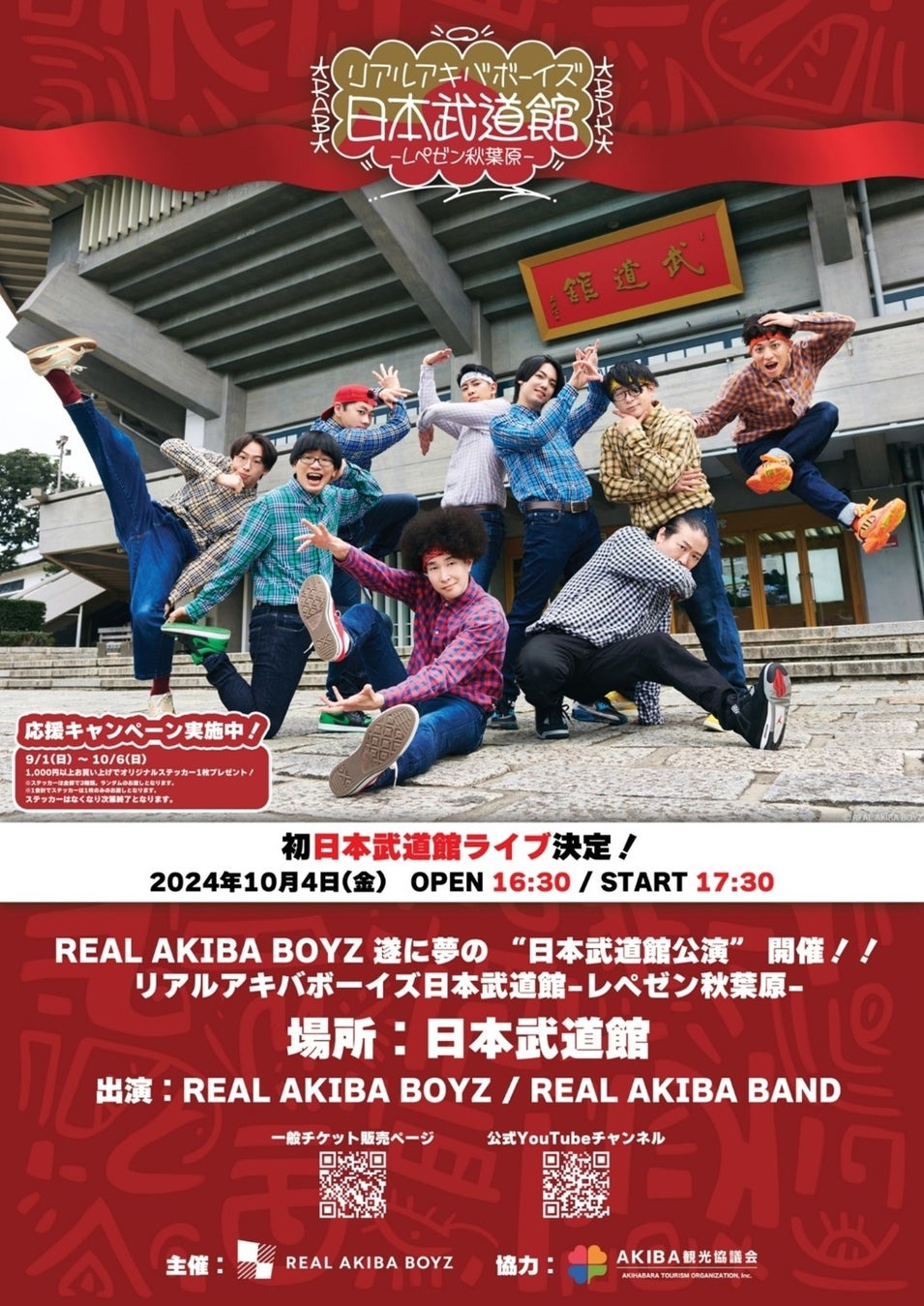 アニソンダンスのパイオニア"REAL AKIBA BOYZ"の武道館応援キャンペーンが2024年9月1日より実施!秋葉原界隈の100店舗でお買い物すると限定ステッカーがプレゼント