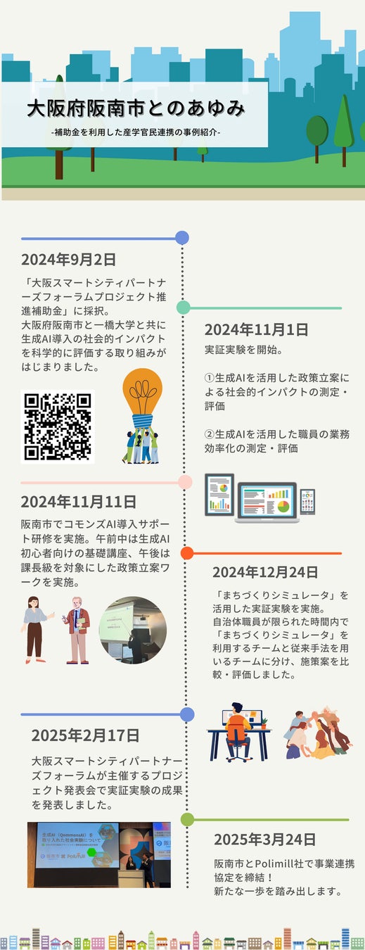 本協定の締結により、Polimill社と阪南市は、生成AI技術を活用した自治体業務の効率化や、施策立案支援のための共同開発を進め、地域課題の解決に向けた取り組みを推進して参ります。
