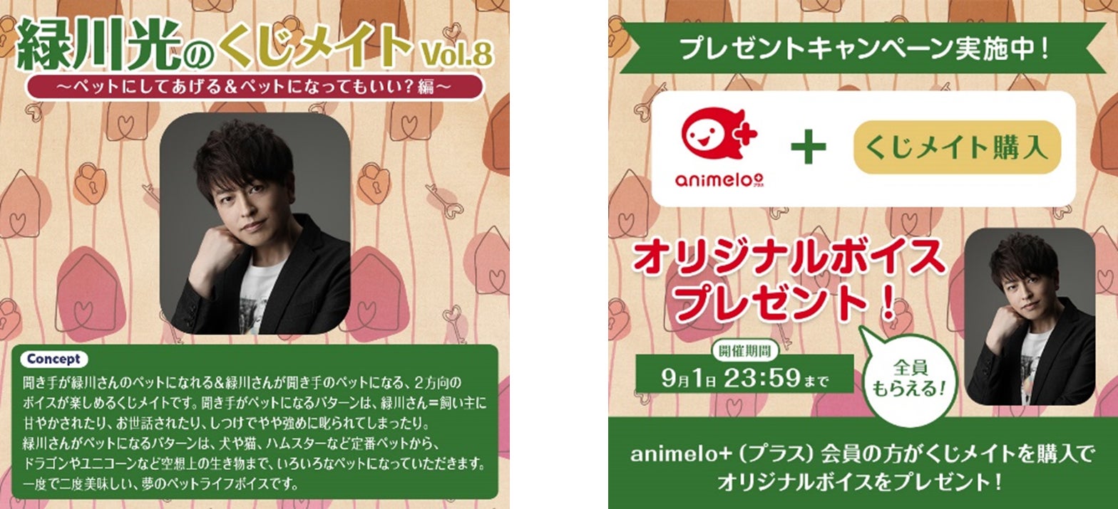 「緑川光のくじメイトVol.8~ペットにしてあげる&ペットになってもいい?編~」は、『あんさんぶるスターズ!! 』天祥院英智役、『名探偵コナン』諸伏景光役などを務める声優・緑川光の第8回目となるオンラインくじです。