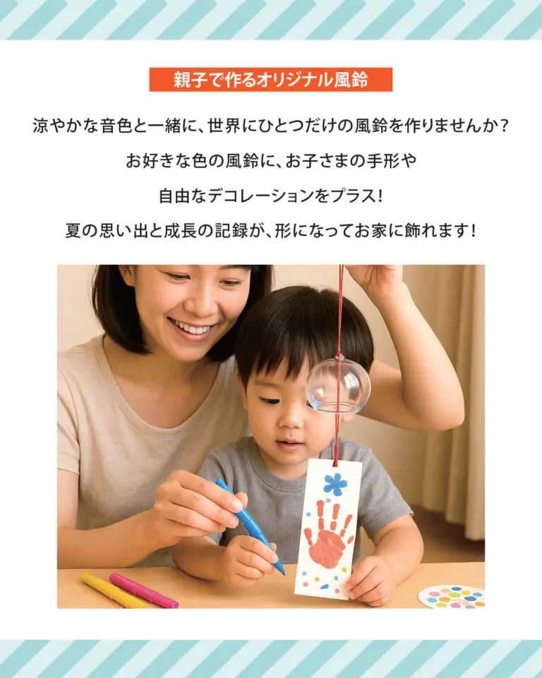 ベビーマッサージや季節フォト、オリジナル風鈴づくりなど・・・参加者限定ランチボックスで気軽にママ同士のおしゃべりも♪