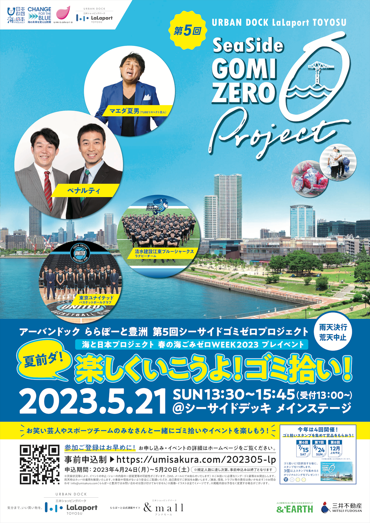 三井不動産商業マネジメント株式会社(所在:東京都中央区 代表取締役社長 大林修)が運営する三井ショッピングパーク アーバンドック ららぽーと豊洲は、SDGs活動の一つとして、海が近い商業施設としての独自性を活かした「シーサイドゴミゼロプロジェクト」と称して、海を綺麗にするゴミ拾いやイベントを昨年に引き続き、1年間に4回開催(予定)いたします。