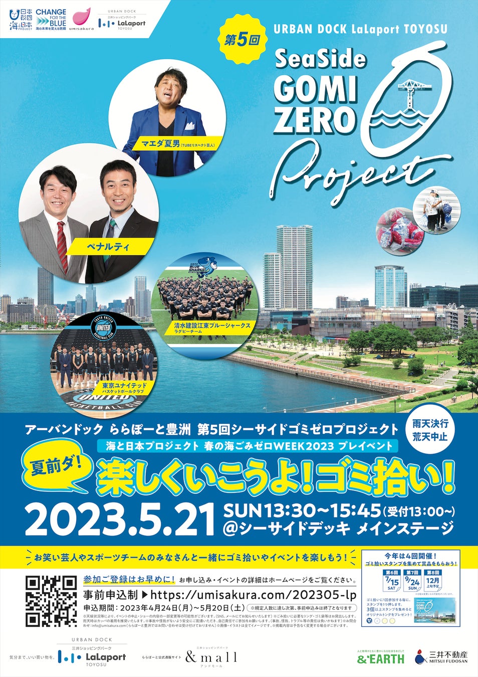 今回は、「ペナルティ」、TUBEリスペクト芸人の「マエダ夏男」、東京ユナイテッドバスケットボールクラブ、清水建設江東ブルーシャークスをお迎えしてみなさんと一緒にゴミ拾いやイベントを楽しみます。海のゴミの約8割は「街」からやってきます。NPO法人海さくら、日本財団、アーバンドック ららぽーと豊洲と海に思いを馳せながら、みんなの「豊洲」を綺麗にしましょう!