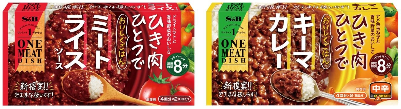 エスビー食品株式会社は、普段の料理において高まる時短・簡便ニーズに応え、ひき肉ひとつで作ることのできる即席ルウ「ワンミートディッシュ ミートライスソース」「ワンミートディッシュ キーマカレー 中辛」を新発売します。