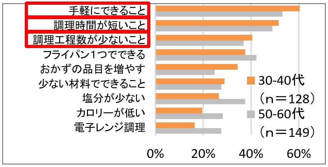 若年層ほど「手軽さ」を重視しており、調理の負担を軽減することが普段のメニューとして定着するポイントとなっています。
