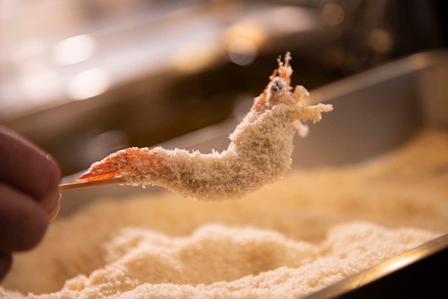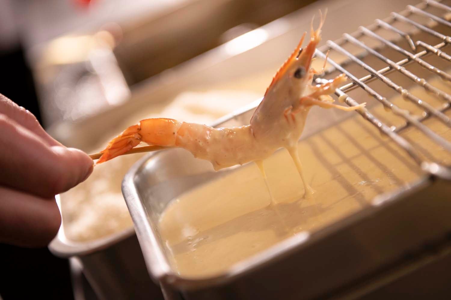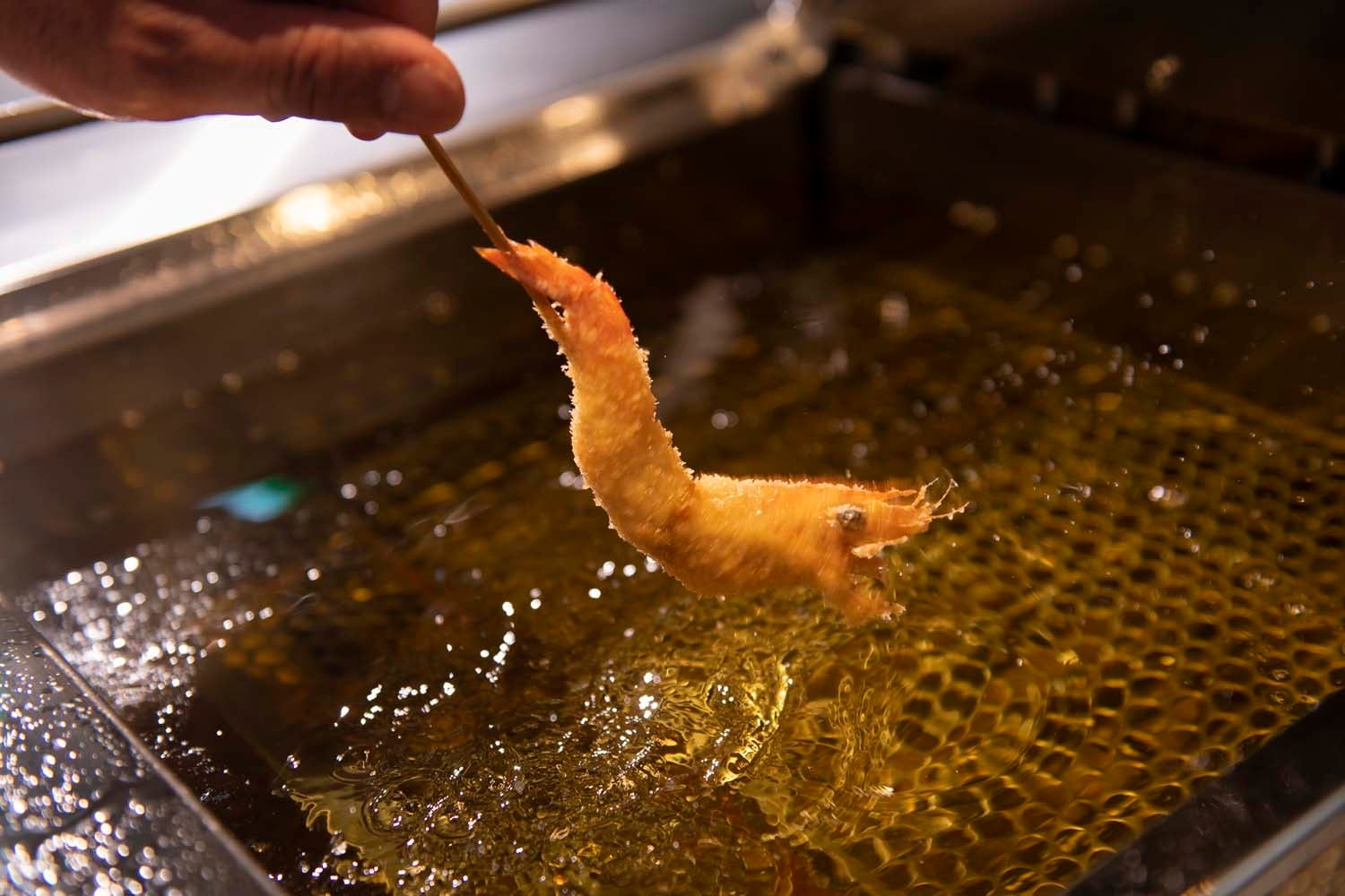 食材の旨味を活かすポイントは細かめの生パン粉、オリジナルのネリヤ(バッター液)、100%ひまわり油の3つ。串揚げの種類が多いからこそ、たくさん食べても揚げ物の重さを感じにくい、飽きのこない串揚げに仕上げるため、職人たちがこだわってたどり着いた衣と油の組み合わせです。