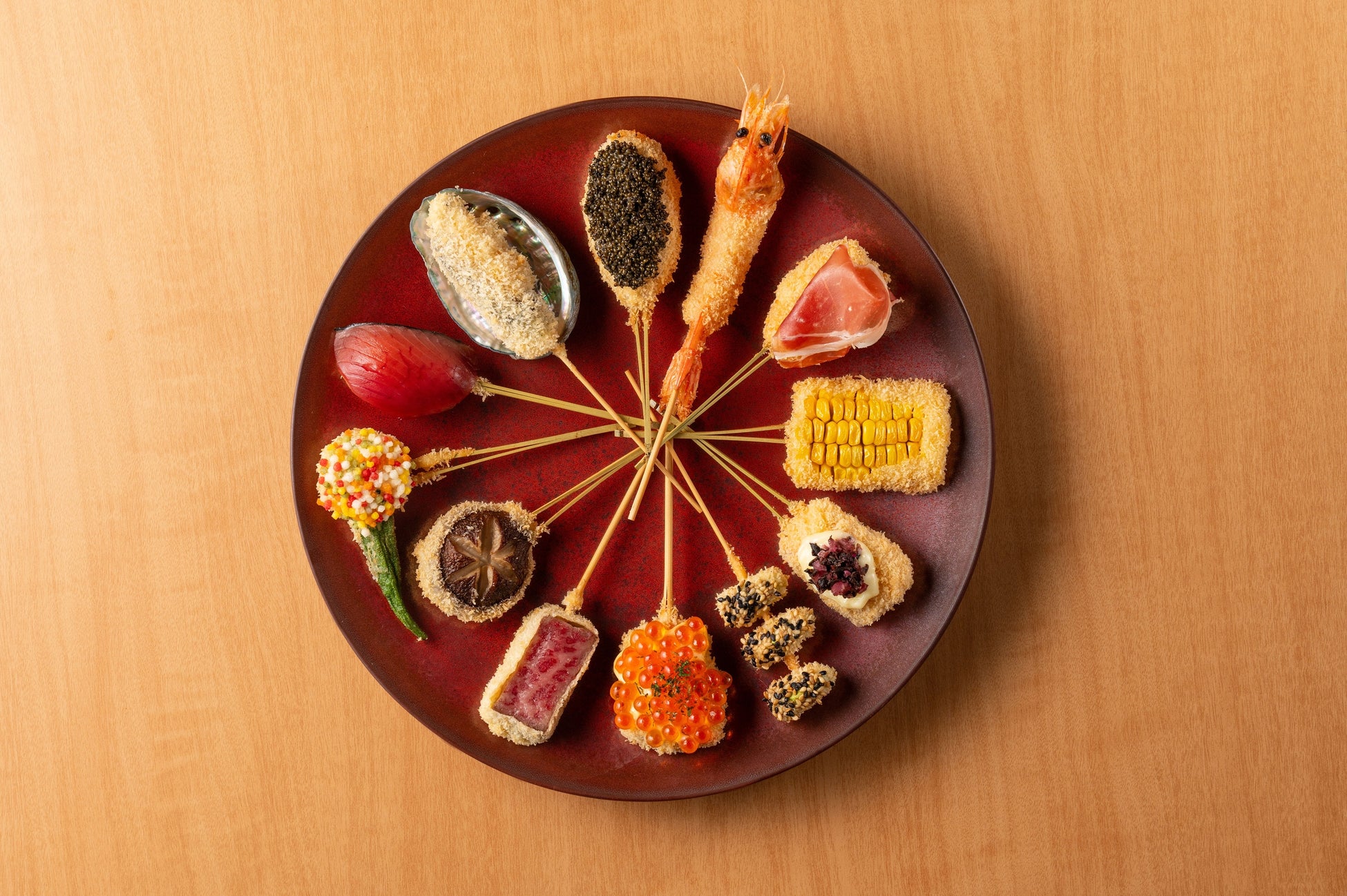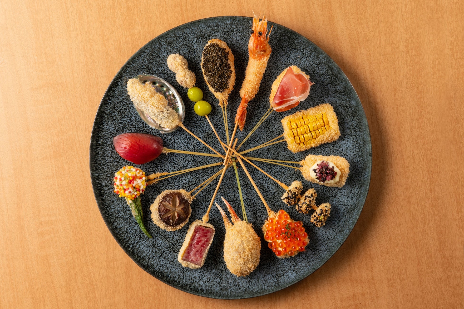 食材には厳選した肉や魚、野菜串はもちろんのこと、季節ごとに旬の食材を組み合わせた贅沢な味わいの串をご用意しています。串揚げの既成概念にとらわれない新しい食の体験をお楽しみください。