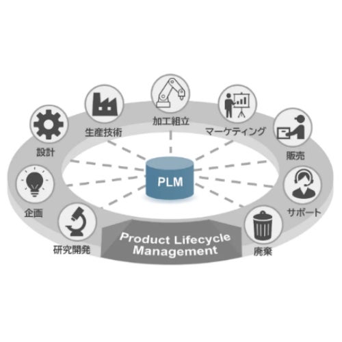 Product Lifecycle Management の略であり、日本語では「製品ライフサイクル管理」と呼ばれます。製品の企画から、設計、製造、調達、サポートといった全工程を管理・支援する仕組みであり、ものづくりの基幹システムとして位置づけられています。データの一元管理、BOMの管理と変換、変更管理、パーミッション管理、プロジェクト管理などの機能で、製品情報管理におけるさまざまな課題を解決へと導きます。