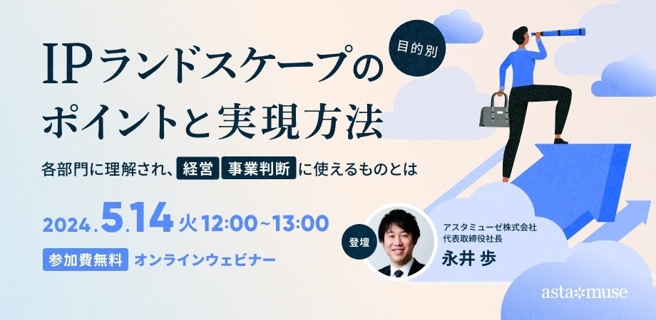 知財担当者・R&D部門・経営者向け無料セミナー「目的別IPランドスケープのポイントと実現方法 ~各部門に理解され、経営・事業判断に使えるものとは~」を5月に再開催