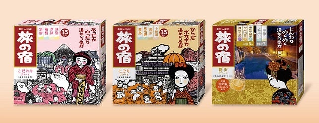 <左から:旅の宿 こだわりアソート、にごりアソート、贅沢アソート/全品、医薬部外品>