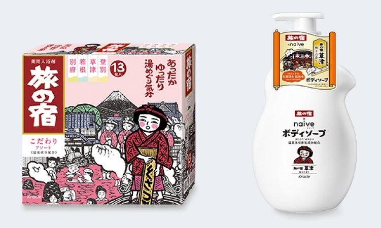 自宅に居ながら湯めぐり気分が楽しめる、薬用入浴剤「旅の宿」[医薬部外品]は、1986年の発売以来、温泉の温浴効果や香りを研究するとともに、温泉の世界観、日本の情緒を追求してきました。中でも、木田安彦氏による版画のパッケージは、日本各地の温泉地を巡る楽しさと日本ならではの情緒が表現されており、「旅の宿」のアイデンティティと言えるものです。