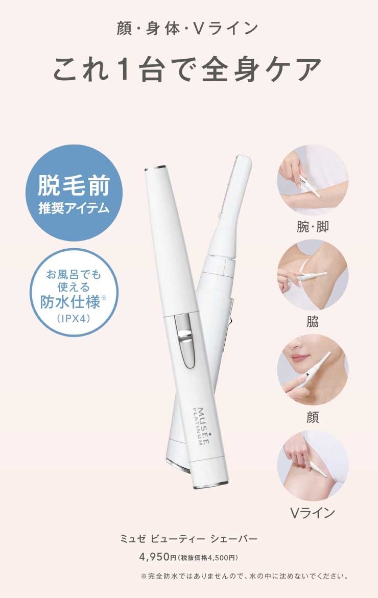 顔・身体・Vラインまで!これ1台で全身ケア 美容脱毛サロンのこだわりが詰まったミュゼオリジナル ビューティー シェーバー誕生!