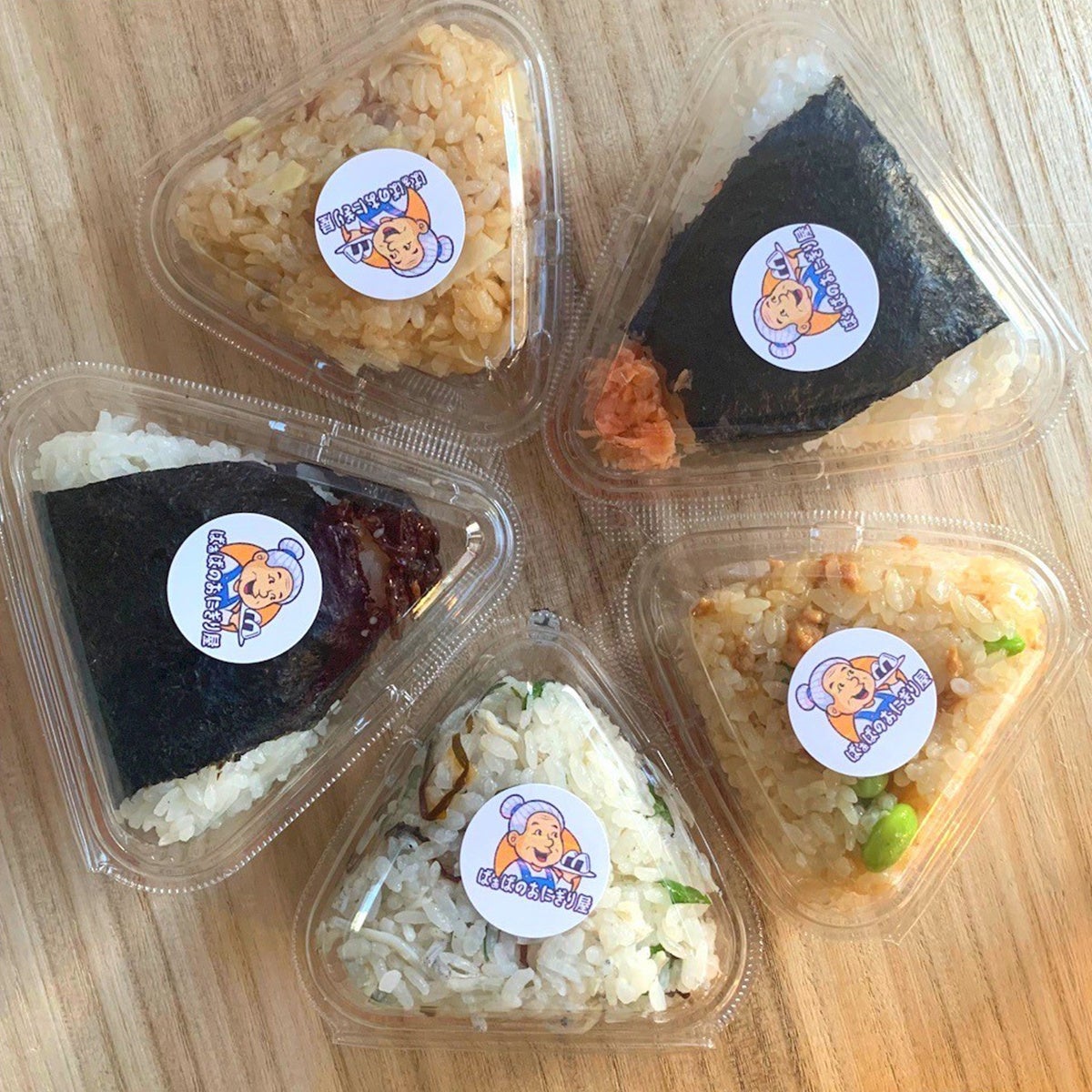 宮城県産「ササニシキ」を高火力で一気に炊き上げ、ふっくら握ったばぁばこだわりのおにぎりを宮城県石巻産の上級海苔、厳選された具材とともに!
