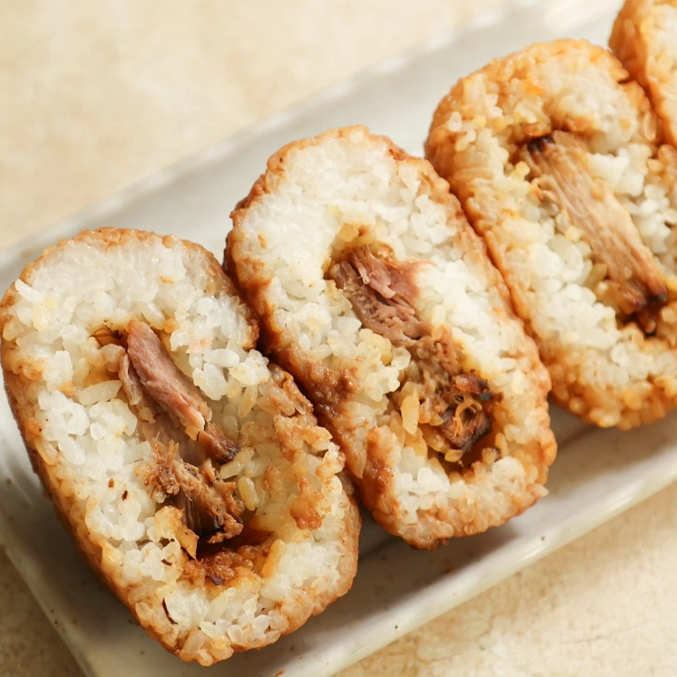 外は香ばしく、中はふんわりとした食感が楽しめる親子3代で営む焼きむすび専門店。東北産豚肉の厚切りチャーシュー入りで、ボリューム満点の美味しさ!