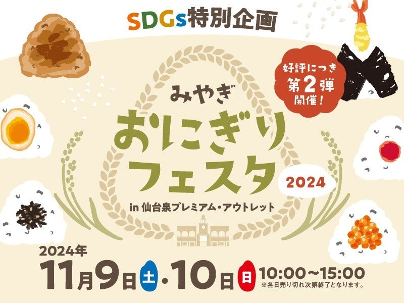 仙台泉プレミアム・アウトレット(所在地:宮城県仙台市 運営:三菱地所・サイモン株式会社)では、宮城県内のおにぎり店を中心とした延べ25店舗※1が集まる「みやぎ おにぎりフェスタ2024秋」を、2024年11月9日(土)・10日(日)の2日間開催します。