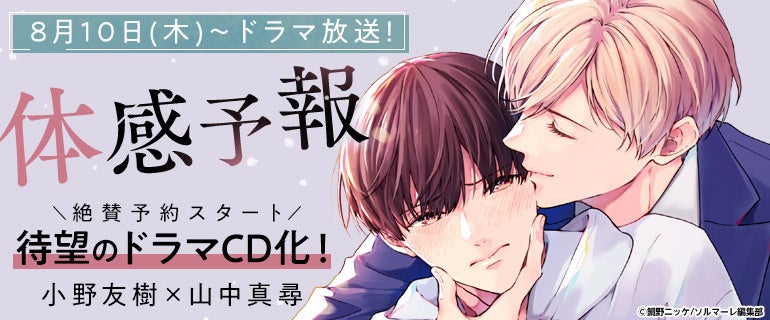 数々の賞を総なめ!実写ドラマ化でも話題沸騰中!累計1000万DL超の大人気BLコミック『体感予報』小野友樹、山中真尋主演ドラマCDが本日予約開始!
