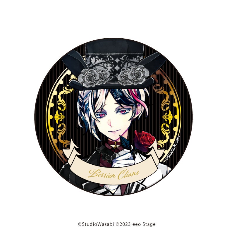 執事たちのお顔をクローズアップした缶バッジは、およそ6cmというサイズ。イベントストーリー「黒のお茶会」のビジュアルを使用したシックなデザインになっています。