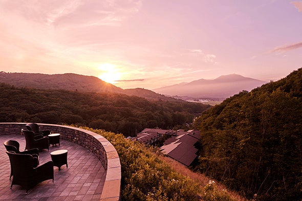 「ルグラン軽井沢ホテル&リゾート」は、2018年に自然豊かな南軽井沢の地に誕生しました。7万坪の広大な敷地内に、ホテル・ヴィラ・温泉棟や庭園が点在する滞在型リゾートです。標高1,000mのテラスからは、軽井沢の名山・浅間山の絶景を一望できます。夕食は地元食材にこだわった美食フレンチをご用意。クラシック調の館内には、バー、屋外プール、フィットネスジムなど、長期のご滞在でも楽しめる充実の施設を完備しております。
