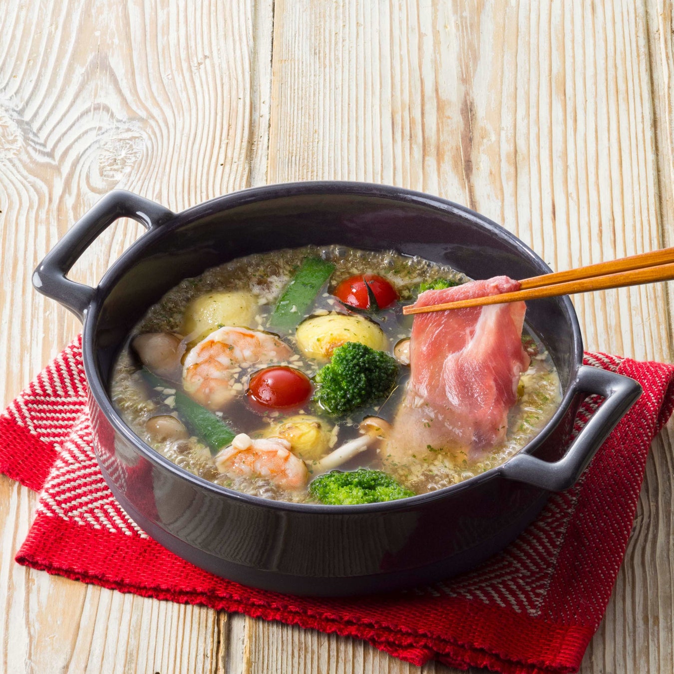 《ファンコミュニティ『しゃぶしゃ部』から誕生したラムとの相性抜群!“海老香るアヒージョだし”》