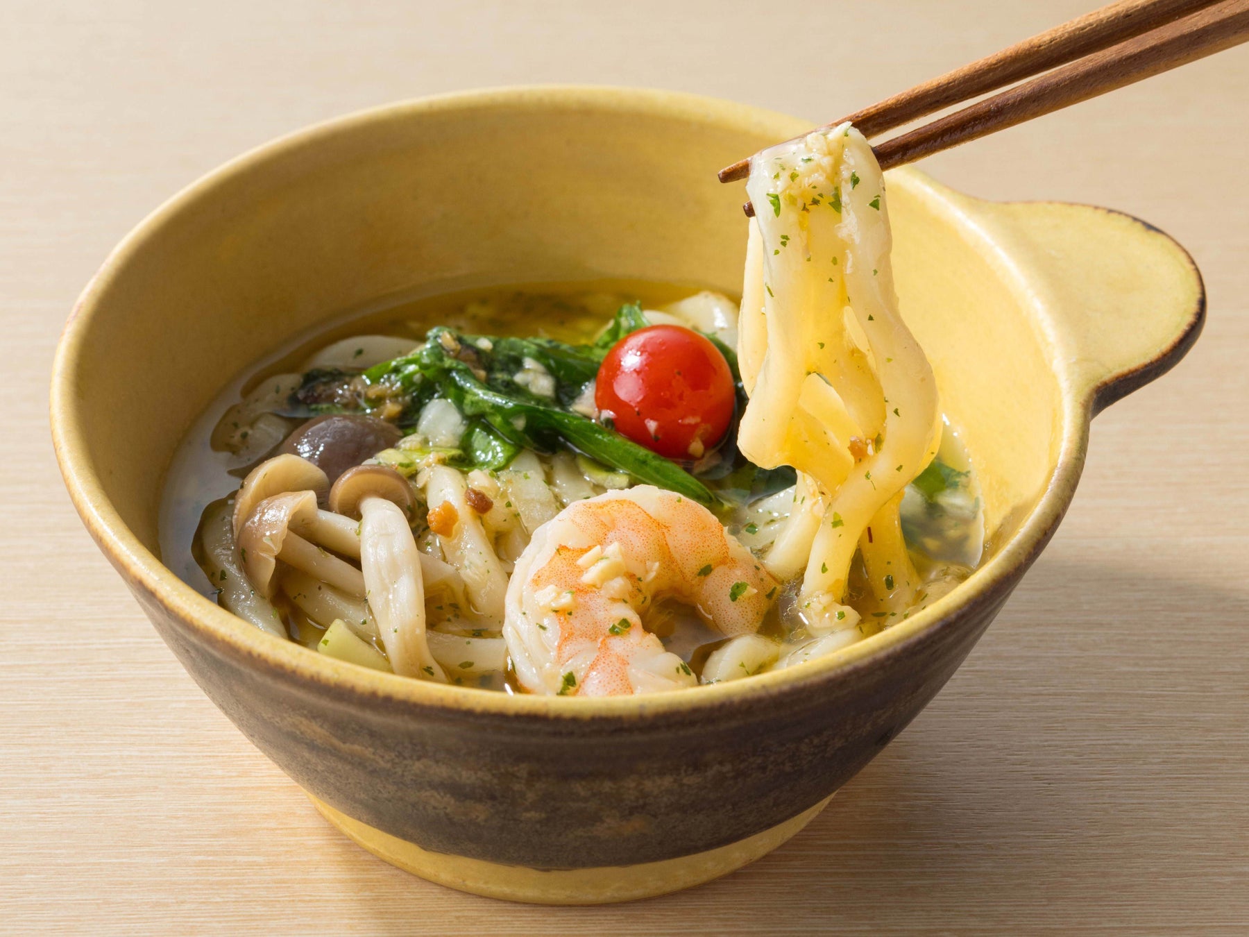 〈洋〉アヒージョ×〈和〉うどんの異色の組み合わせをお楽しみいただけます。