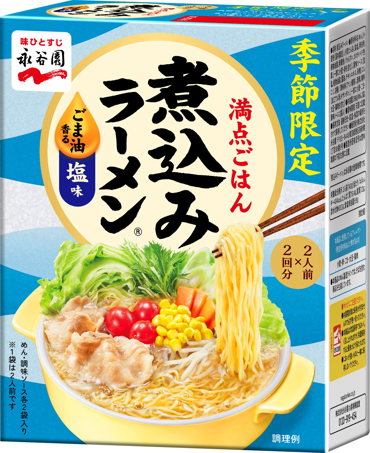 株式会社 永谷園(社長:掛谷 浩志、東京都港区)は、「寒くなった時の鍋の定番」としてご愛顧いただいている「煮込みラーメン しょうゆ味」「同 みそ味」を、季節を問わずお楽しみいただくために通年販売し、さらに季節ならではの味わいとして春夏季節限定メニュー「煮込みラーメン ごま油香る塩味」(希望小売価格・税抜各430円)を2026年3月2日(月)より新発売いたします。