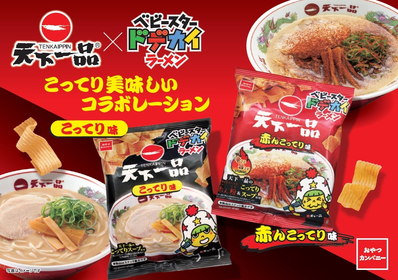 株式会社おやつカンパニー(所在地:三重県津市 代表取締役社長:横山正志)は、人気ラーメンチェーン「中華そば専門店 天下一品」(所在地:滋賀県大津市 代表取締役社長:木村 一仁)とのコラボレーション商品として、『ベビースタードデカイラーメン(天下一品 こってり味/天下一品 赤んこってり味)』を2024年9月23日(月)より期間限定発売します。