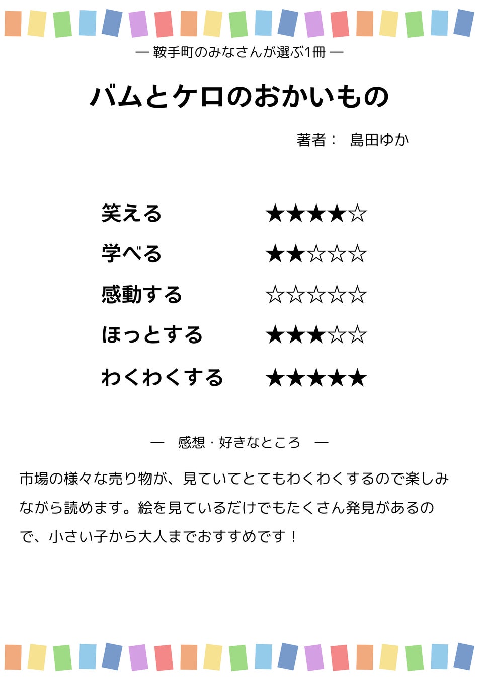 「ブックライブラリ にじいろ」のコアとなる企画が「鞍手町に暮らす人々のおすすめ本」です。ライブラリの存在を通して鞍手町の交流創出に貢献したいという想いから、鞍手町役場や公民館、くらて病院、町内小・中学校7校などの協力を得て、おすすめの本と、その本にまつわる思い出や感想を募るアンケートを今年7~9月に実施。10代から60代までの幅広い世代から、当初予定していた100件を大きく上回る213件が集まりました。