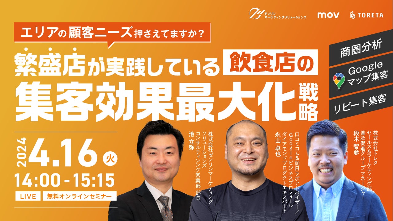 【飲食業界必見!】繁盛店が実践している、集客効果を最大化する戦略とは[ 無料オンラインセミナーのご案内
