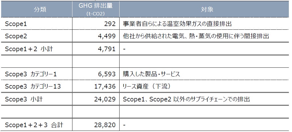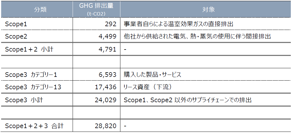 本投資法人の2021年度(2021年3月~2022年2月)のGHG排出量は以下の通りです。なお、SBTネットゼロ認定の対象となる本削減目標において、Scope3※3はカテゴリー1及びカテゴリー13を削減対象範囲として設定しています。