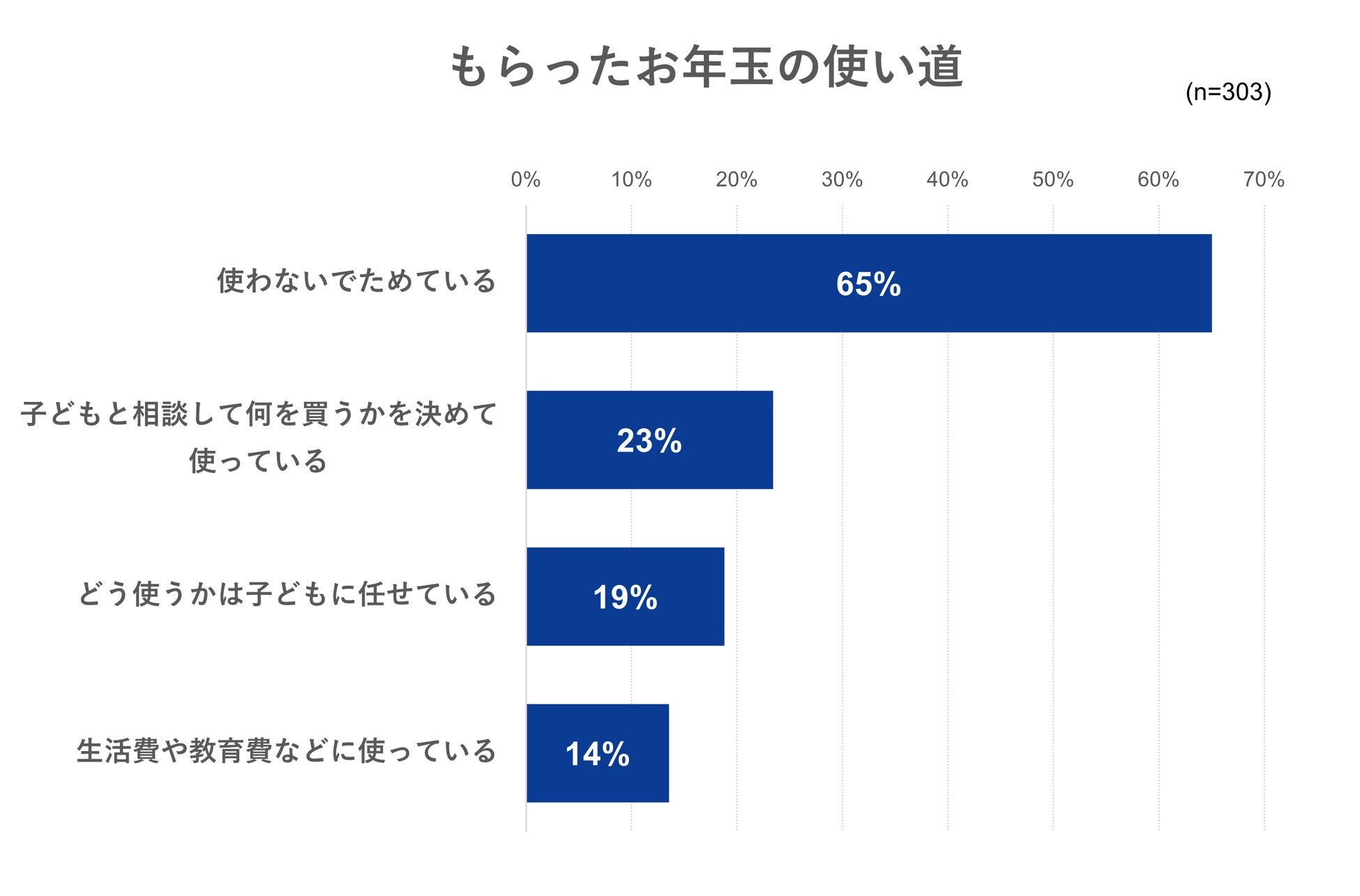 65%の家庭が「使わないでためている」と答えており、貯蓄を重視する家庭が多数でした。