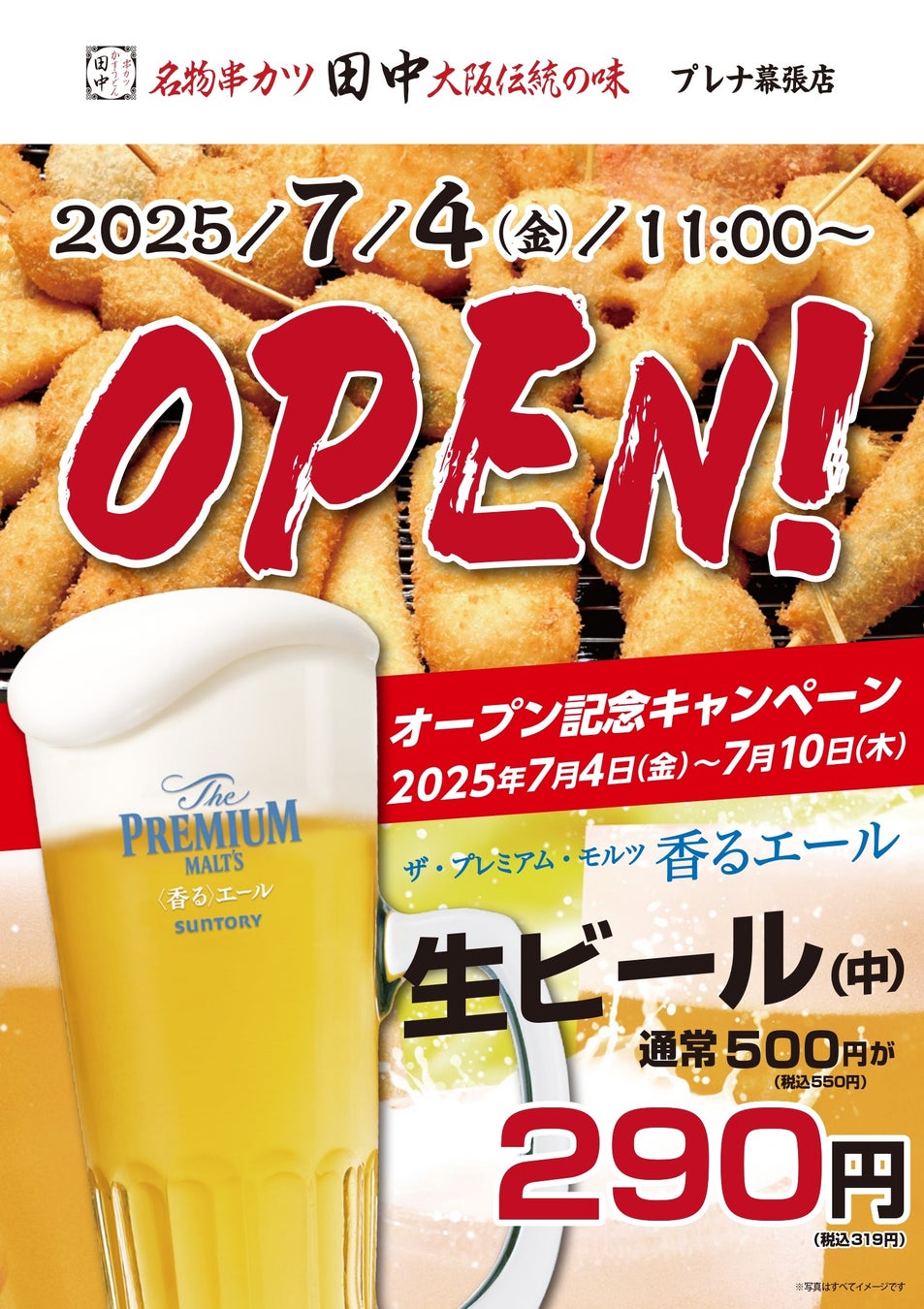 【新店情報】『串カツ田中 プレナ幕張店』が7月4日(金)にオープン!オープン記念キャンペーンで【生ビール290円(税込319円)!】
