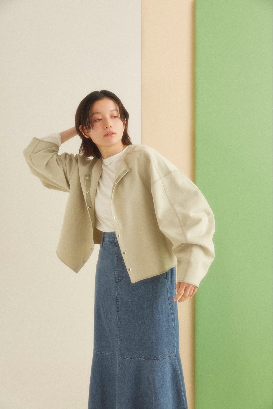 ハリ感ある素材を用いて袖にやわらかい曲線を表現しました。デニムやワンピース、手持ちのシンプルなアイテムにプラスするだけでこなれた印象に。