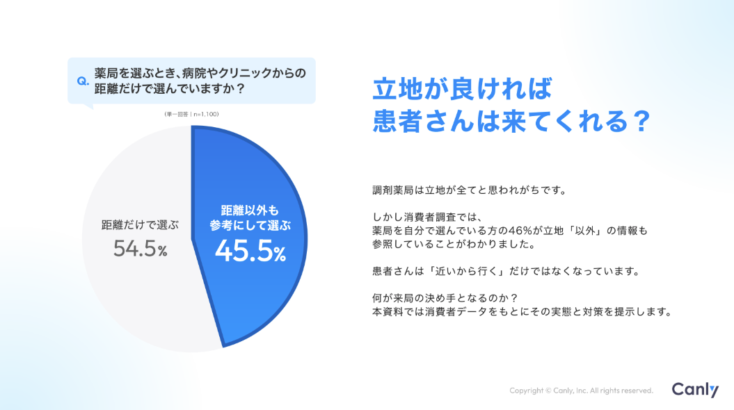 Google ビジネスプロフィール™︎・HP・各SNSの一括管理サービス「カンリー店舗集客」の開発・提供を行う株式会社カンリー(所在地:東京都品川区、代表取締役:辰巳 衛,秋山 祐太朗)は、調剤薬局業界向けに「患者さんは立地だけで薬局を選んでいなかった!クチコミ分析で読み解く、患者が薬局を選別するときの心理と対策」を無料公開しましたので、ご案内いたします。