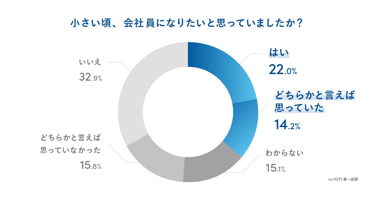 ・「小さい頃から会社員になりたかった」「生まれ変わっても会社員になりたい」と回答した社会人は半数以下