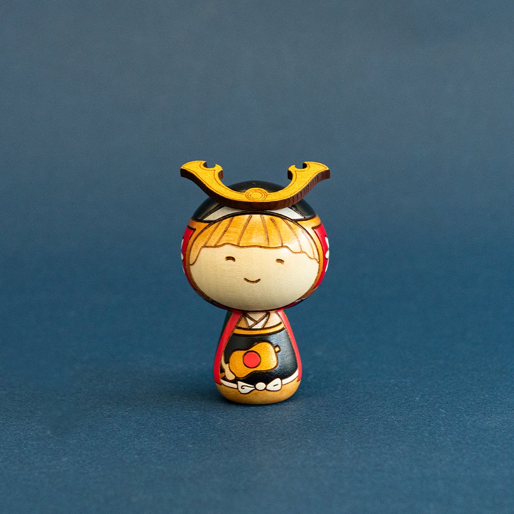 若武者のペレくんは高さ8cmほど、飾り台全体も幅約17cm、重さも200gと、気軽に飾れる五月人形です。玄関に飾ったり、デスクの上に置いたり、床の間に彩りを添えるのにもぴったり。