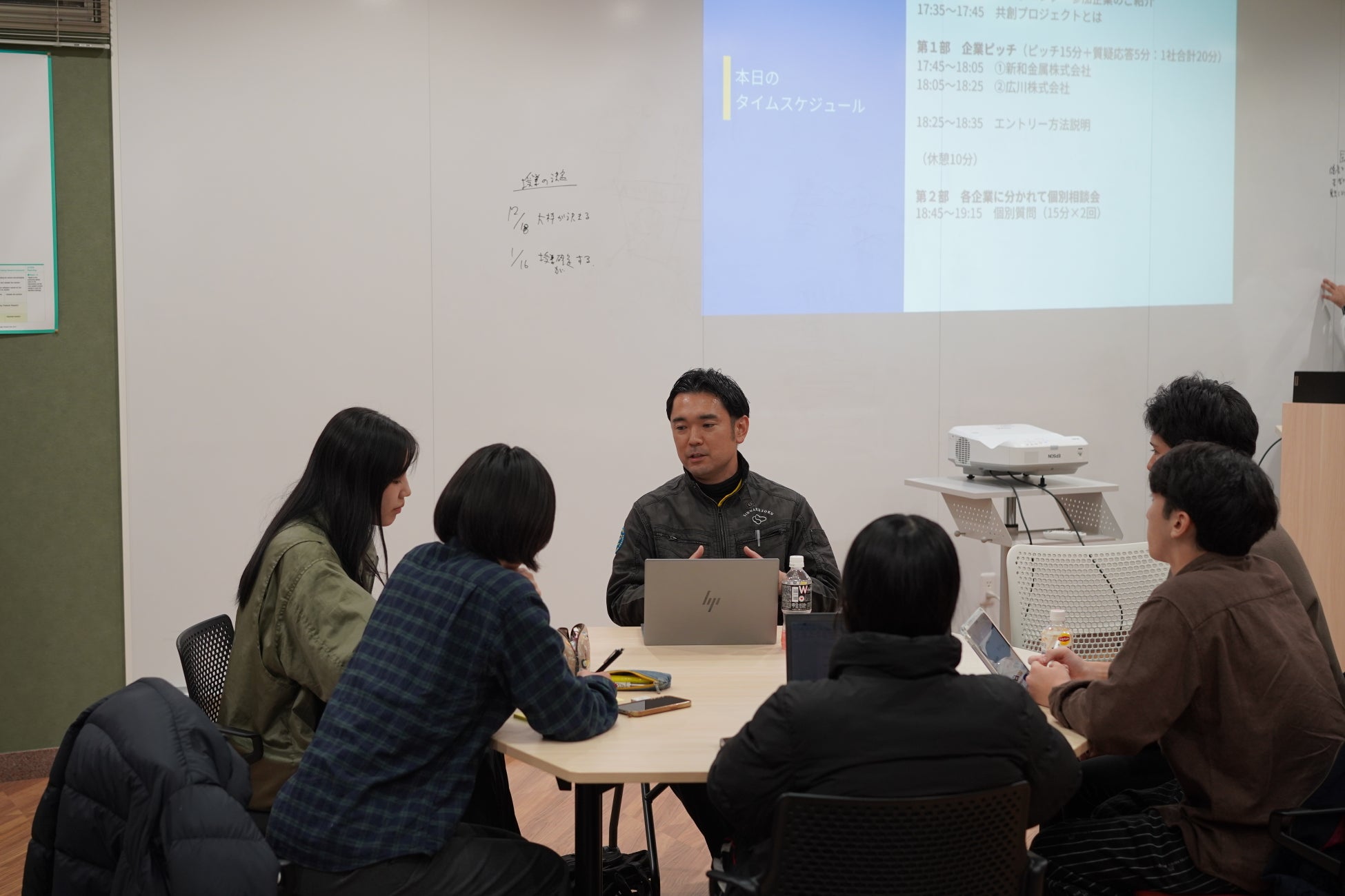 登壇企業による熱意あふれるプレゼンテーションに、オフラインで参加した10名の学生たちは真剣な表情で聞き入っていました。プレゼン後には、学生との活発なディスカッションや質疑応答が行われ、会場は終始前向きな雰囲気に包まれていました。