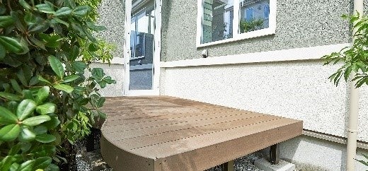 変幻ルーム横に縁側を設置。遊歩道から直接入れるため、「アクティビティ空間」として住民とのコミュニケーションスペース拠点を創造。植栽により外部からの視線に配慮することで、家族のセカンドリビングとしても利用可能。また、縁側テラスから変幻ルームに直接入れる動線も確保することで、地域住民や訪問者との玄関を介さないコミュニケーションを促し、感染症への対策ならびに室内のプライバシー性を強化。