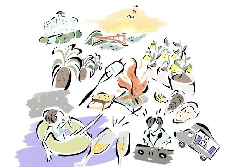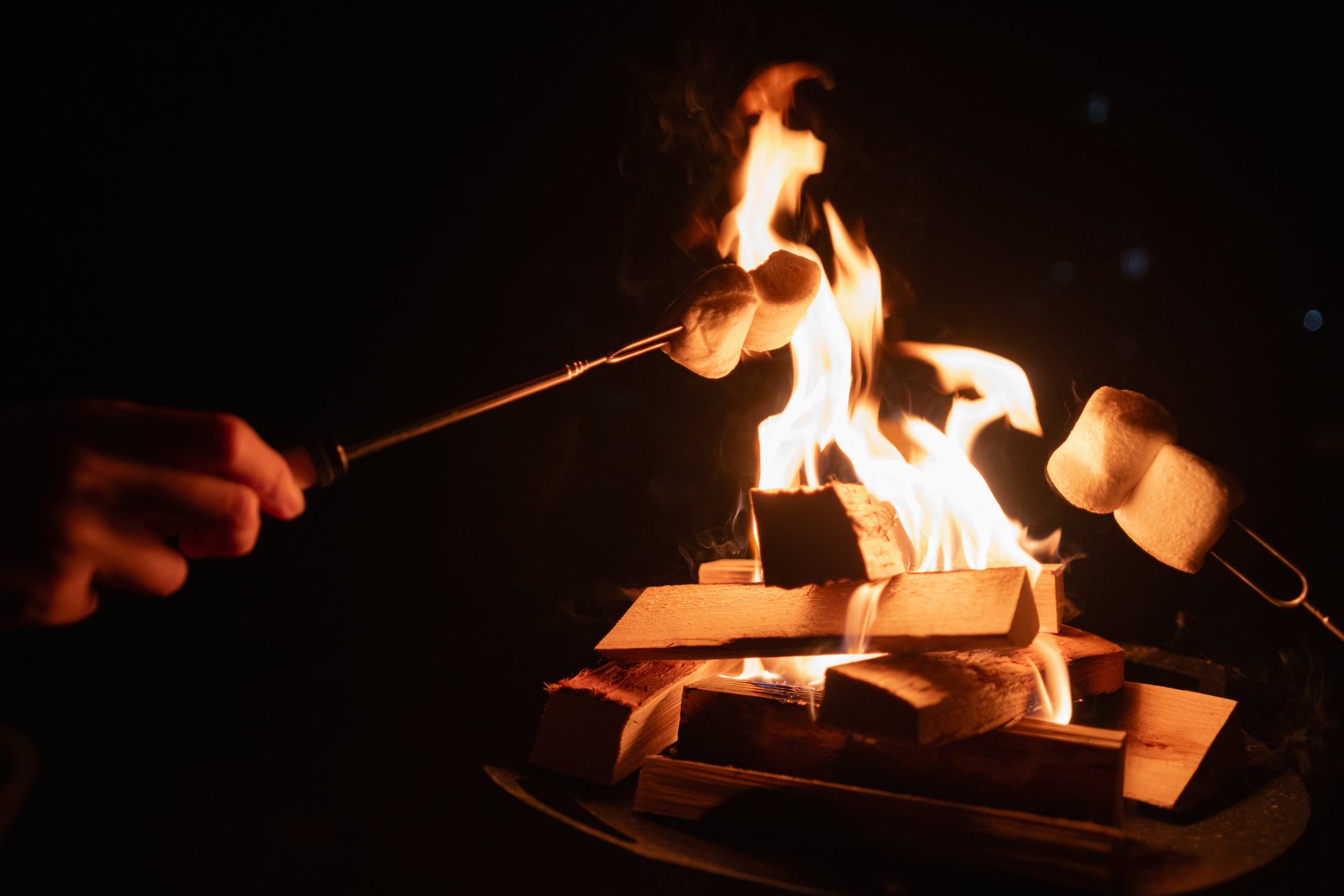 プールエリアに設置された焚火台で、お客様ご自身で作る「スモア」をお楽しみいただけます。「スモア(S'more)」とは、焼いたマシュマロとチョコレートをクラッカーで挟んで食べる、アメリカ発祥のアウトドアデザートです。「Some more!(もっと欲しい)」という名前の通り、マシュマロとチョコレートの甘さ、クラッカーの塩気が絶妙にマッチする、やみつきになる味わいです。