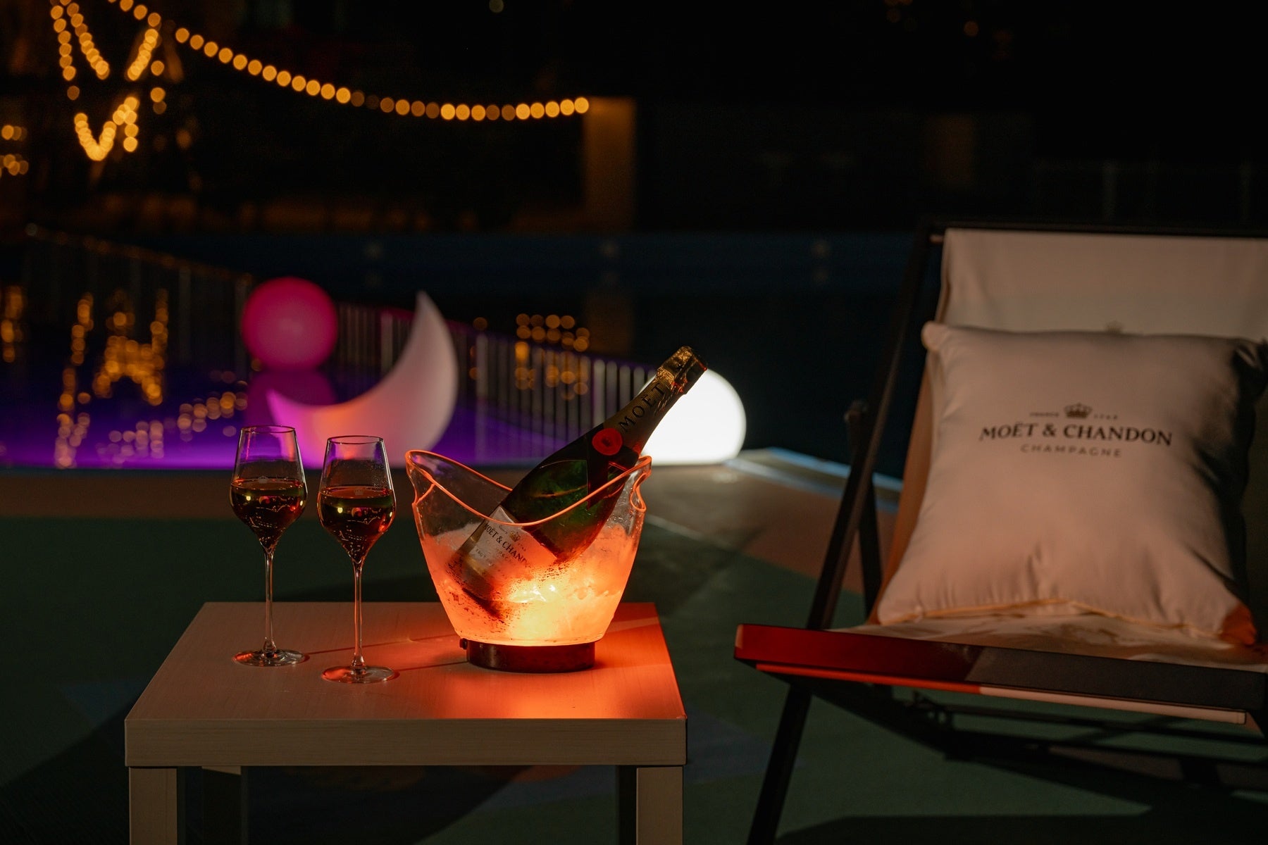ライトアップされるプールを眺め、心地よい音楽を聴きながら、フリーフローでシャンパーニュ、Moët & Chandonを楽しめる宿泊プランを販売いたします。