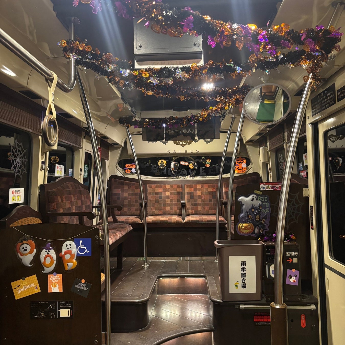 また、東備営業所は、西大寺鐡道をモチーフにしたレトロ車両「SAIBUS(さいバス)」をハロウィン仕様に飾り付け。どこか懐かしさを感じるレトロな車両と、色とりどりの装飾で、不思議な世界を楽しめます。2台のバスは31日(金)まで、それぞれの営業所の区間で運行します。