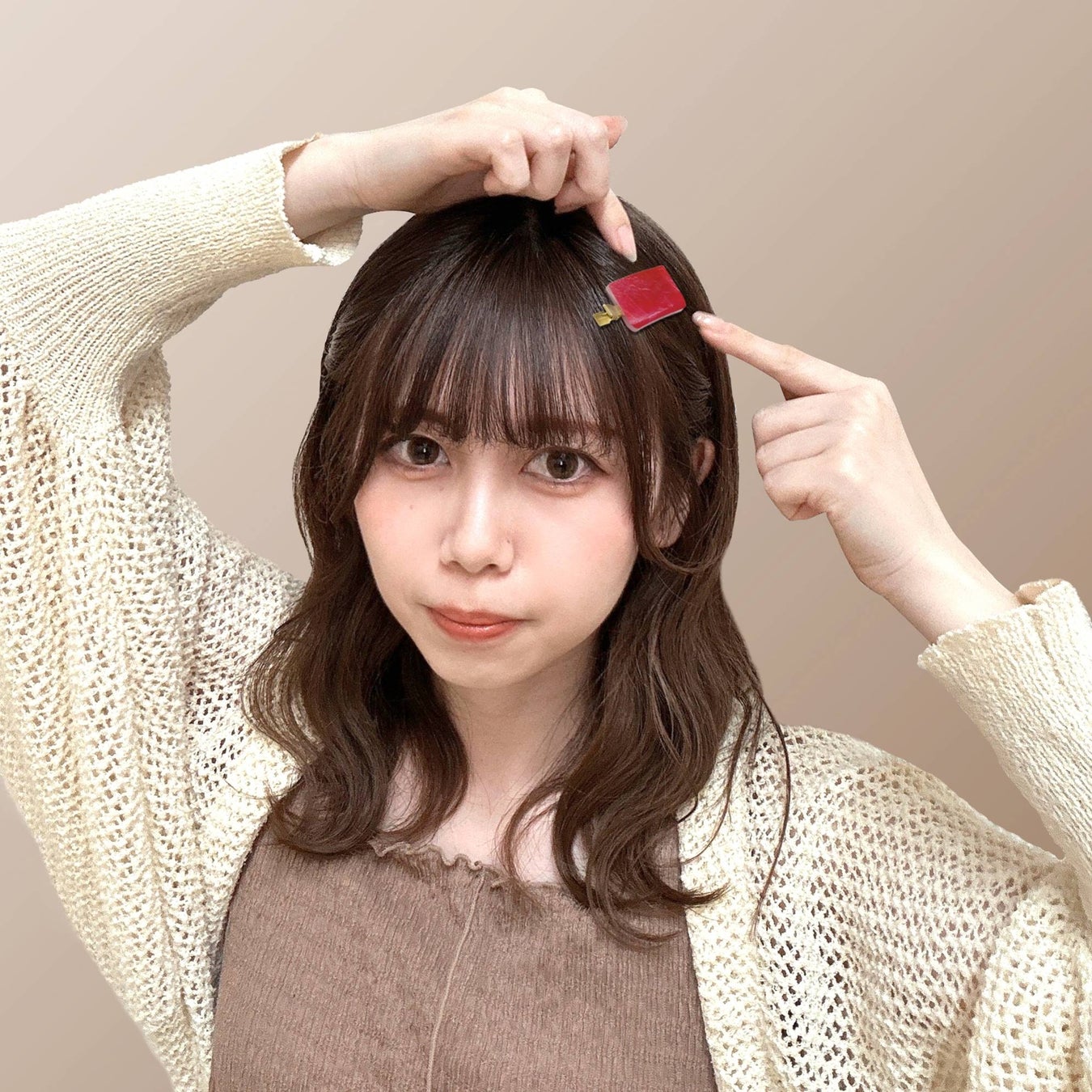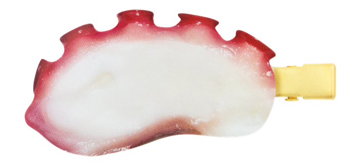 表から見ても裏から見てもお刺身デザインの前髪クリップ。クリップ部分がお箸になっています。