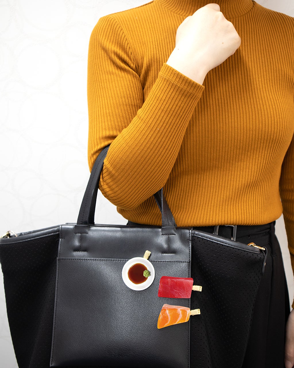 前回好評だった『前髪クリップ ~焼肉編~』の第2弾として、細部までこだわったリアルなお刺身デザインのクリップが「かぷえぼ」限定で登場。「マグロトロ」「エビ」「ホタテ」など人気のお刺身をはじめ、「ツマギク」「醤油小皿」などお刺身を彩る脇役たちもラインナップしました。さらにクリップ部分はお箸のデザインになっており、持つと本当にお刺身をつまんでいるような気分になるデザインです。ブックマークやネクタイピンなどさまざまな用途で使用可能なバラエティーに富んだデザイン全12種類を展開いたします。
