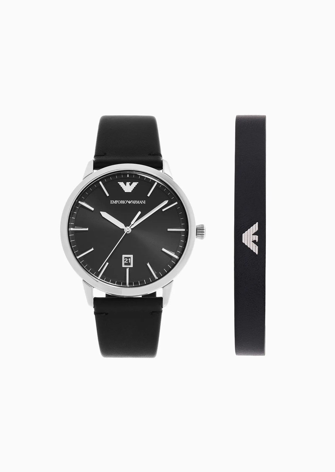 3針デイトウォッチ ブラックレザーストラップ&ブレスレットセット