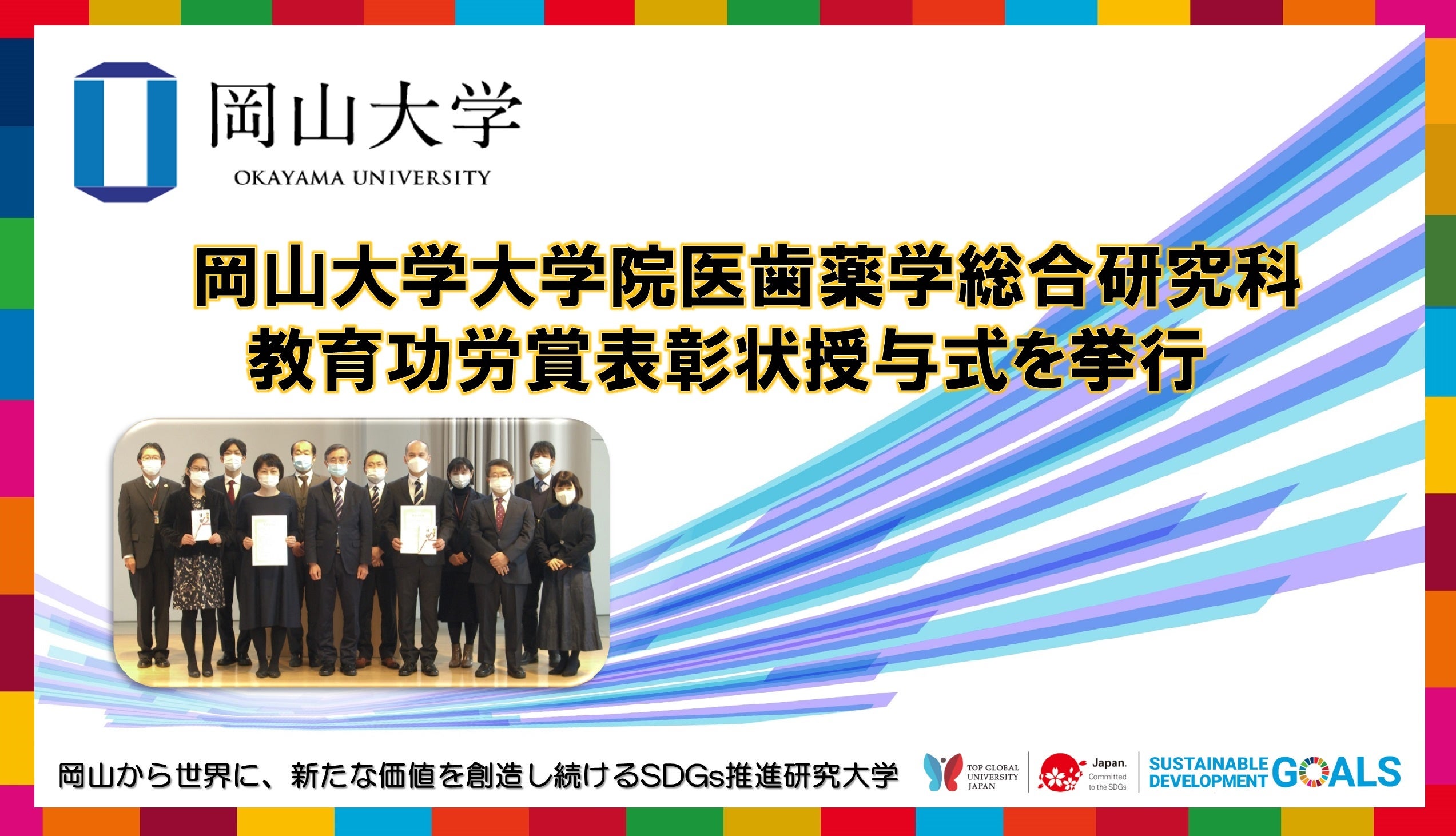 【岡山大学】岡山大学大学院医歯薬学総合研究科教育功労賞表彰状授与式を挙行しました